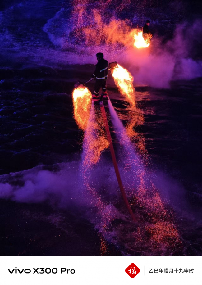 活动尾声,震撼人心的打铁花表演与璀璨烟花秀相继上演。体验官们锁定专属观礼席位,见证炽热铁花划破夜空、绚烂烟花绽放太湖之上,纷纷用镜头捕捉这一新春限定美景,烟花绽放的场景被vivo实况照片精准捕捉,将难忘的年味瞬间定格为永恒记忆。